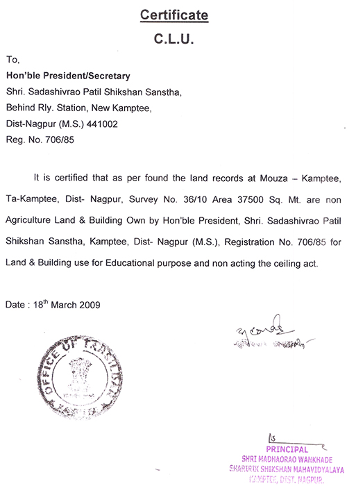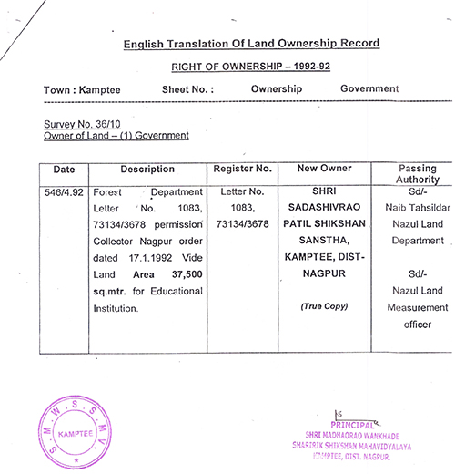 Shri. Sadashivrao Patil Shikshan Sanstha Kamptee, Dist-Nagpur
